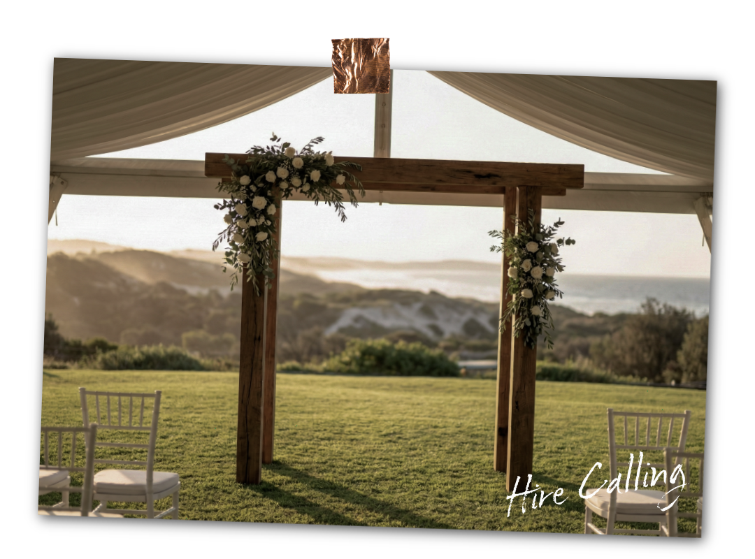 Our large solid wood arbour is available as an optional add-on to frame your aisle and create a clean ceremony focal point.